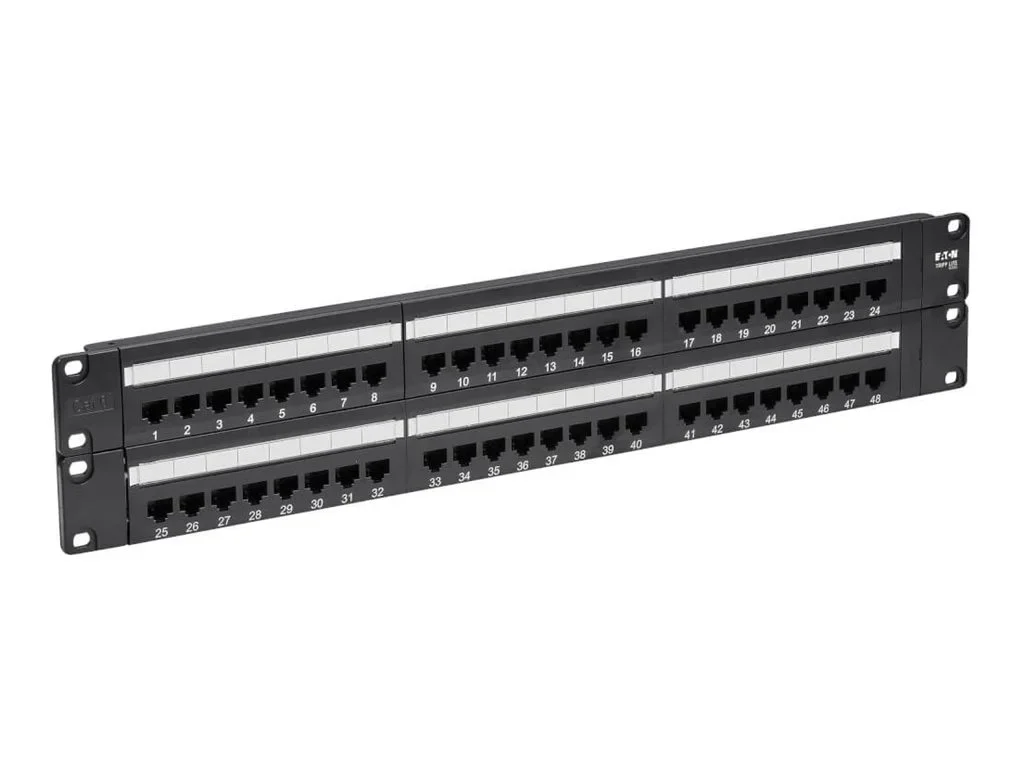 Das Eaton Tripp Lite Series 48-Port Cat6 Cat5 Patch Panel ist für eine effiziente und organisierte Vernetzung konzipiert. Mit seiner robusten Metallkonstruktion gewährleistet dieses Patchpanel eine lange Lebensdauer und zuverlässige Leistung in jeder Umgebung. Mit 48 Anschlüssen und 110er Terminierung unterstützt es CAT 6-Standards und nutzt das T568B-Verdrahtungsschema für optimale Netzwerkkonnektivität. Dieses Panel ist mit RJ-45-Anschlüssen kompatibel und eignet sich für eine Reihe von Ethernet-Anwendungen. Professionelle Installationen profitieren von der 19"-Rack-Größe, die eine einfache Integration in bestehende Installationen ermöglicht.