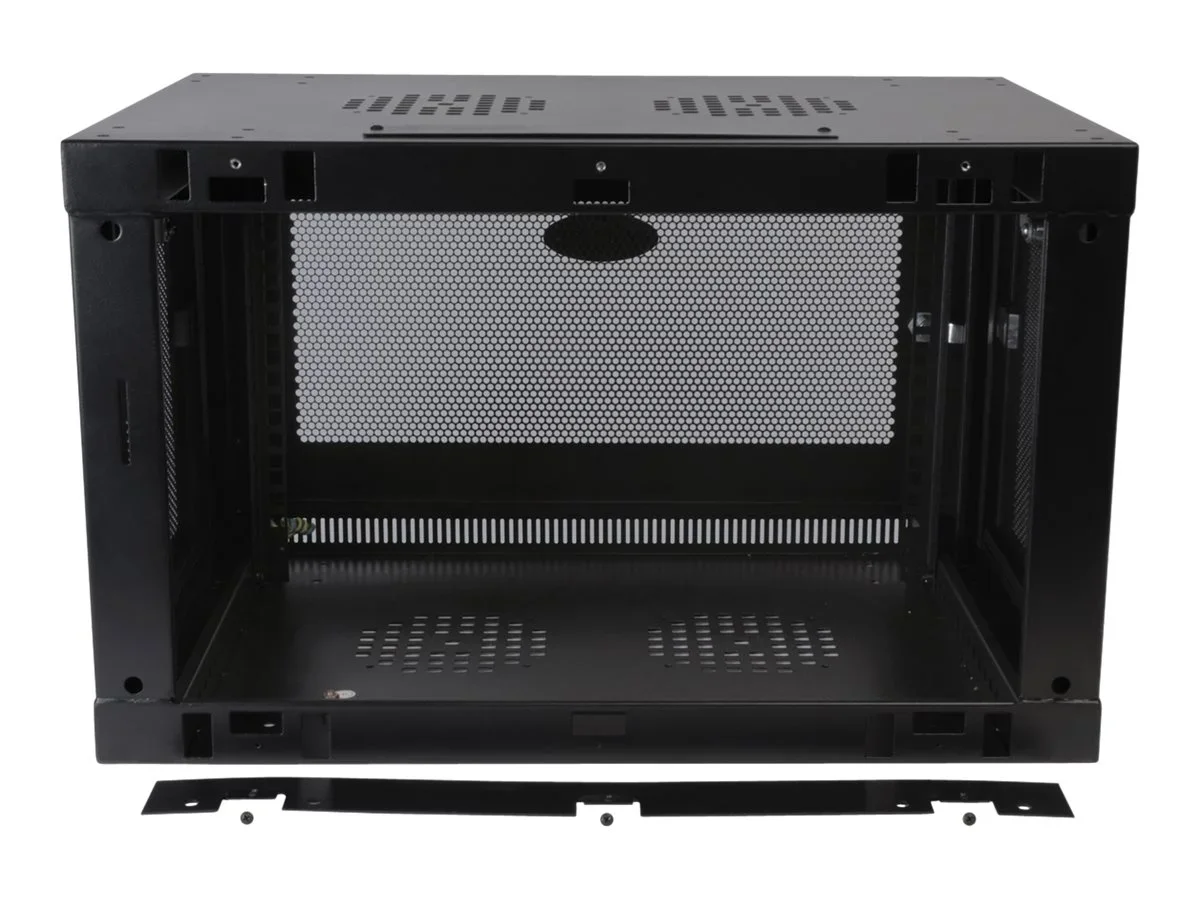 Die Eaton Tripp Lite Serie SmartRack 6U Low-Profile Switch-Depth Wall-Mount Rack Enclosure Cabinet wurde entwickelt, um eine zuverlässige Lagerung von Netzwerkgeräten und anderer Elektronik zu ermöglichen. Sein kompaktes Design ermöglicht eine vielseitige Platzierung, entweder an der Wand montiert oder als Standschrank, wodurch er sich für verschiedene Räume eignet. Der aus robustem Stahl gefertigte Schrank bietet eine Gewichtsbeschränkung von 90,7 kg und unterstützt wertvolle Geräte.
