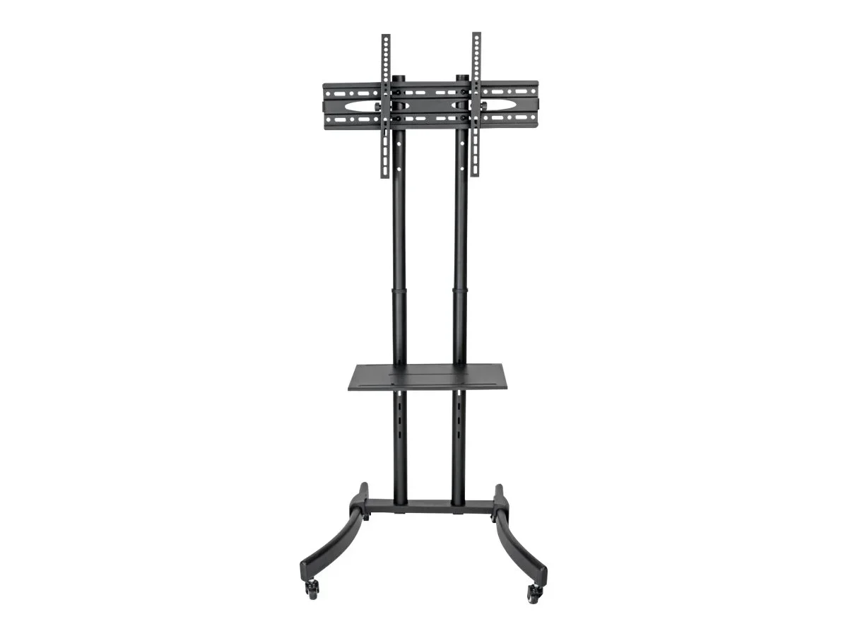 Der Eaton Tripp Lite Series Rolling TV/Monitor Cart ist für Flachbildschirme mit einer Größe von 37 bis 70 Zoll ausgelegt. Der aus robustem Aluminium und Stahl gefertigte Wagen gewährleistet Stabilität und Langlebigkeit und trägt ein maximales Lastgewicht von 39,9 kg. Dank der verstellbaren Höhe kann der Benutzer das Betrachtungserlebnis individuell anpassen, was ihn für verschiedene Umgebungen wie Büros, Klassenzimmer und Veranstaltungen vielseitig einsetzbar macht. Dank der vier Räder lässt sich der Wagen leicht bewegen, um ihn optimal zu positionieren oder zu lagern, während die feststellbaren hinteren Rollen für Stabilität sorgen. Der Wagen verfügt über eine einzelne Ablagefläche, auf der ein Laptop, ein Blu-ray-Player oder eine Webcam untergebracht werden kann, was ihn zu einer funktionalen Ergänzung für jede AV-Einrichtung macht. Die verschiedenen Schnittstellen für die Flachbildschirmhalterung gewährleisten die Kompatibilität mit einer Reihe von TV-Modellen. Für den Aufbau ist eine Montage erforderlich, einschließlich umfassender Komponenten, um einen stabilen, rollenden Ständer für Ihre Bildschirmanforderungen zu schaffen.