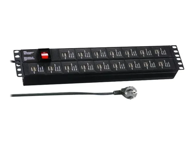 EFB-Elektronik - Steckdosenleiste (Rack - einbaufähig) - Eingabe, Eingang power CEE 7/7 - Ausgangsanschlüsse: 32 (32 x 4-poliger USB Typ A) - 2U - 48.3 cm (19") - 3 m Schnur - Schwarz, RAL 9005
