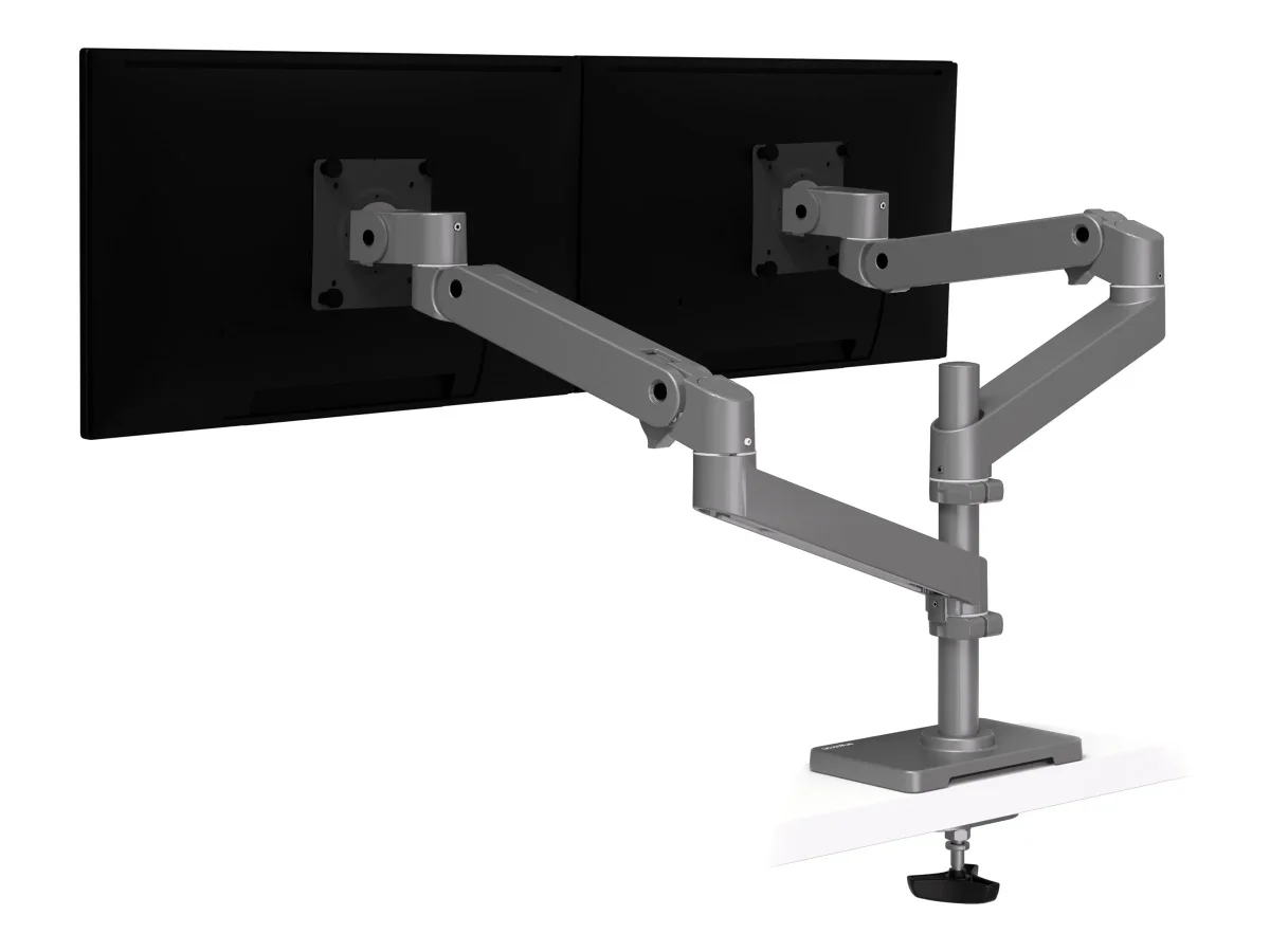 Das Ergotron LX Pro-Montagekit wurde für Effizienz und Ergonomie am Arbeitsplatz entwickelt. Es unterstützt zwei LCD-Bildschirme mit einer Größe von bis zu 24 Zoll und ist damit die ideale Lösung für Dual-Screen-Konfigurationen. Dieses aus strapazierfähigem Aluminium gefertigte Montagekit verfügt über einen robusten Doppelstapelarm, der eine reibungslose Einstellung einschließlich Neigung, Schwenkung und Drehung ermöglicht und so den perfekten Betrachtungswinkel gewährleistet. Das integrierte Kabelmanagementsystem sorgt für Ordnung und trägt zu einer aufgeräumten Arbeitsumgebung bei, während es gleichzeitig hilft, einen anpassbaren Arbeitsbereich mit einer Ösenhalterung für die Tischmontage zu schaffen.
