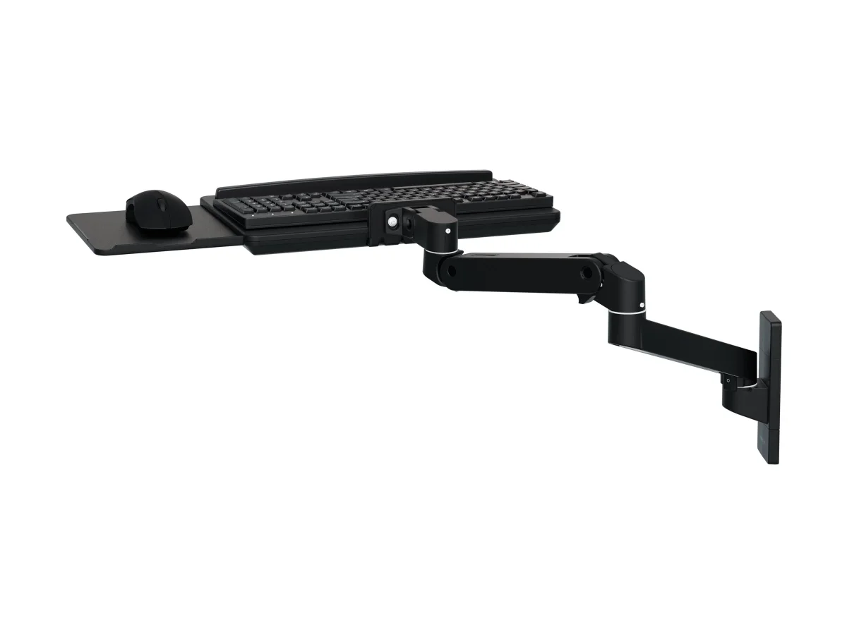 Die Ergotron LX Pro Tastatur-/Mausarmhalterung bietet ein verstellbares Design, das sich ideal zur Optimierung der Ergonomie am Arbeitsplatz eignet. Diese an der Wand montierbare Halterung verfügt über eine robuste Aluminiumkonstruktion, die Langlebigkeit und Stabilität für den täglichen Gebrauch gewährleistet. Das Design ermöglicht eine Neigung um 90° und eine Drehung um 360°, was eine vielseitige Positionierung ermöglicht, um den Komfort und die Effizienz während der Arbeit zu verbessern. Mit einer Hubkraft von 33 cm und einer maximalen Tragkraft von 2,3 kg lässt sich mit dieser Halterung ganz einfach die perfekte, auf individuelle Bedürfnisse zugeschnittene Konfiguration erstellen, die jeden Arbeitsbereich aufwertet.