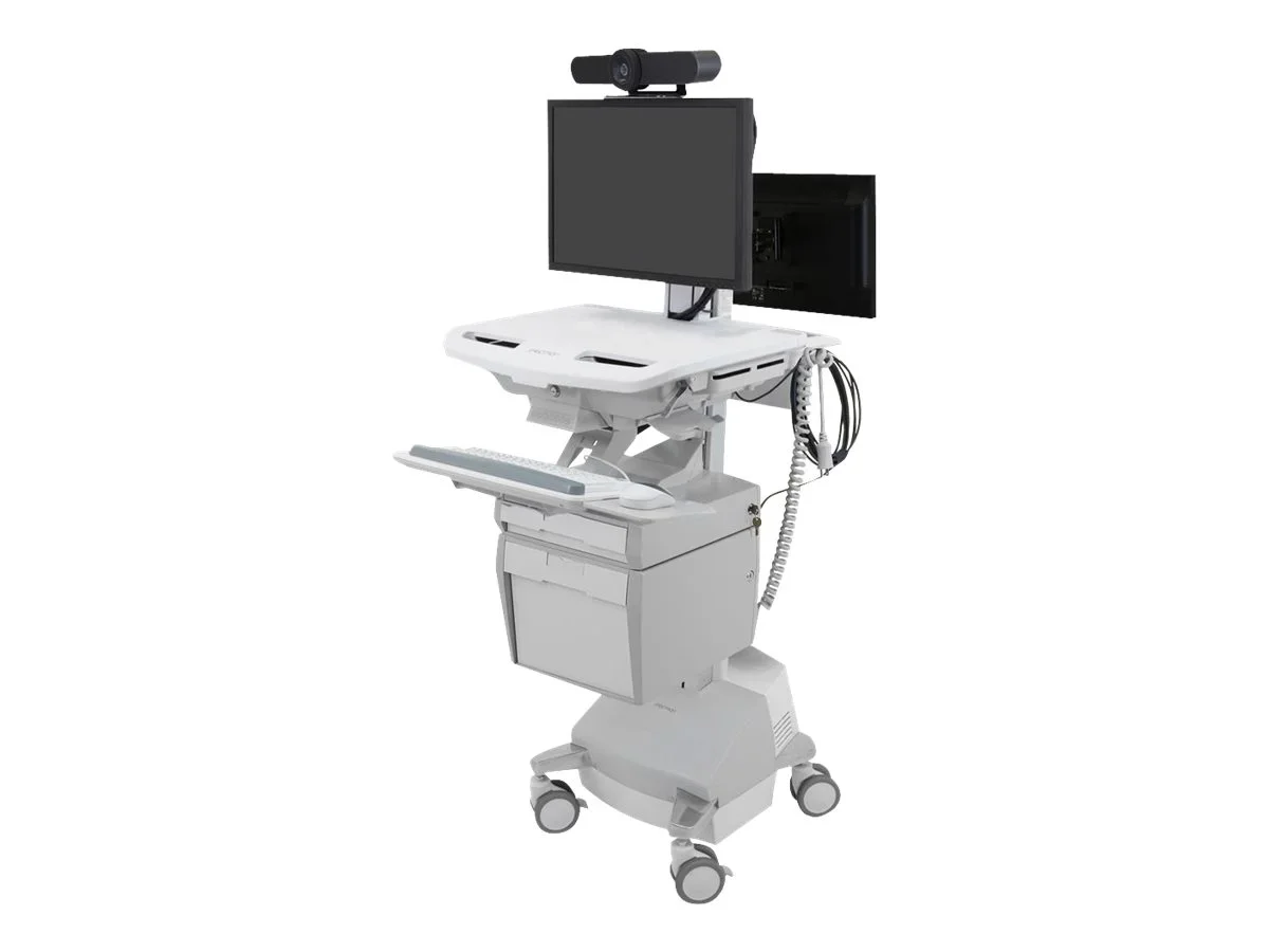 Ergotron - Wagen (nur Laden) - offene Architektur - für 2 LCD-Displays / PC-Ausrüstung - medizinisch - Kunststoff, Aluminium, verzinker Stahl - Grau, weiß, Polished Aluminum - Bildschirmgröße: bis zu 61 cm (bis zu 24 Zoll) - Ausgang: Wechselstrom 230 V - 66 Ah - Bleisäure - TAA-konform