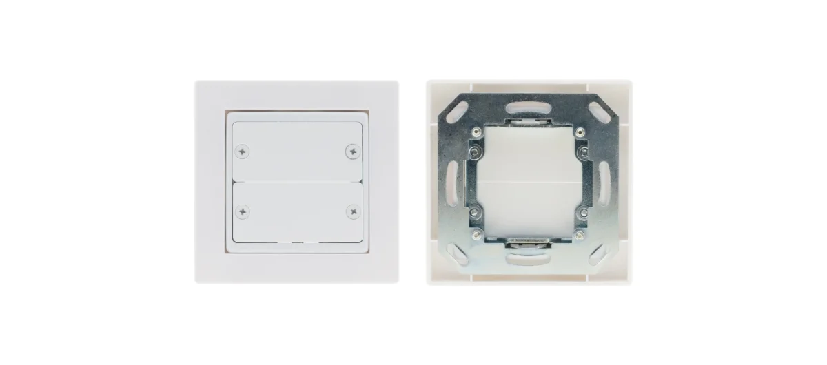 FRAME−1GP ist ein 1−fach EU / UK−Rahmen für die Montage von 2 Wandplatteneinsätzen.