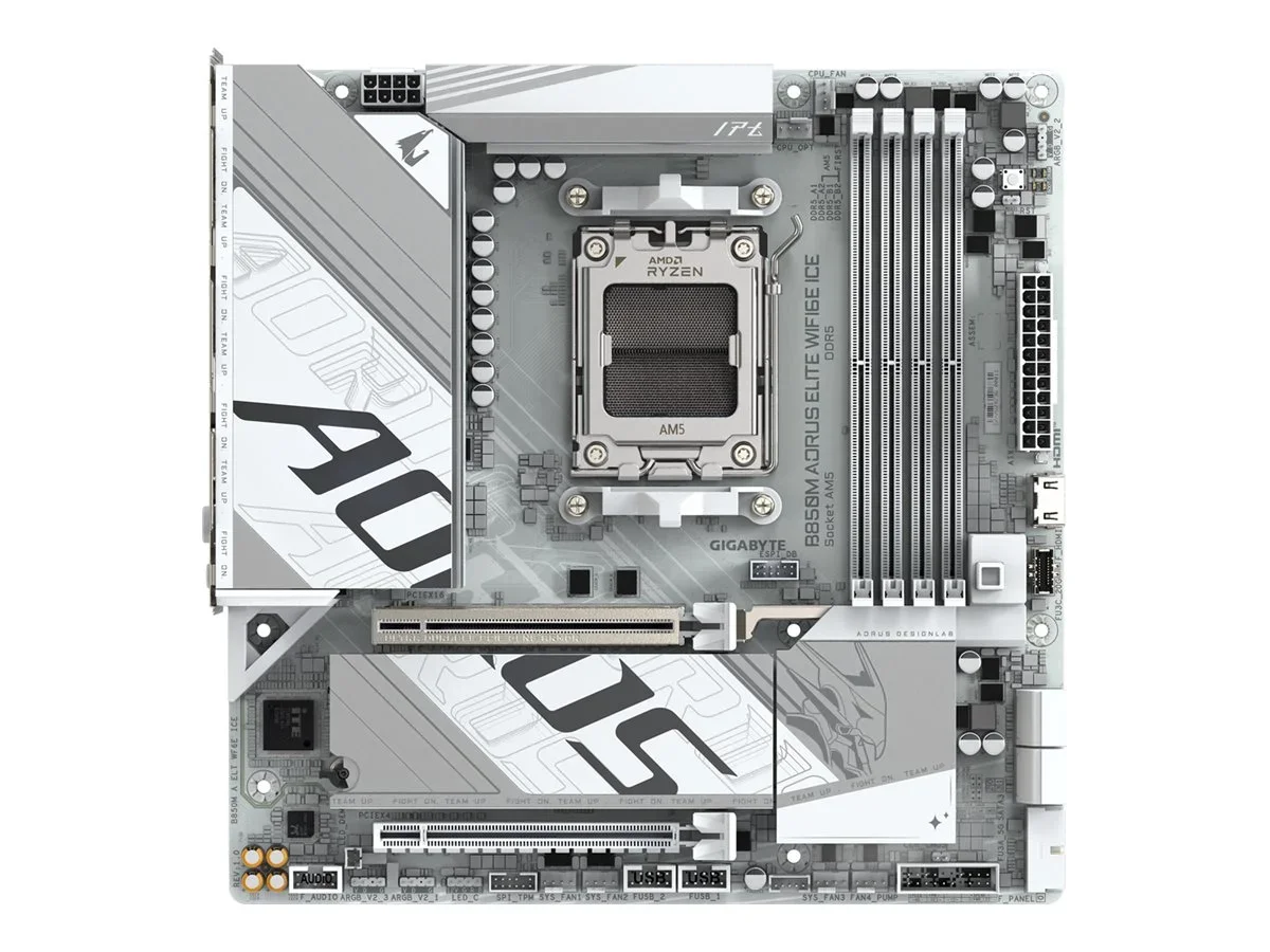AORUS B850M ELITE WIFI6E ICE - Motherboard - micro ATX - Socket AM5 - AMD B850 Chipsatz - USB-C 3.2 Gen 2x2, USB-C 3.2 Gen2, USB 3.2 Gen 1, USB 3.2 Gen 2 - Bluetooth, 2.5 Gigabit LAN, Wi-Fi 6E - Onboard-Grafik (CPU erforderlich) - HD Audio (8-Kanal)
