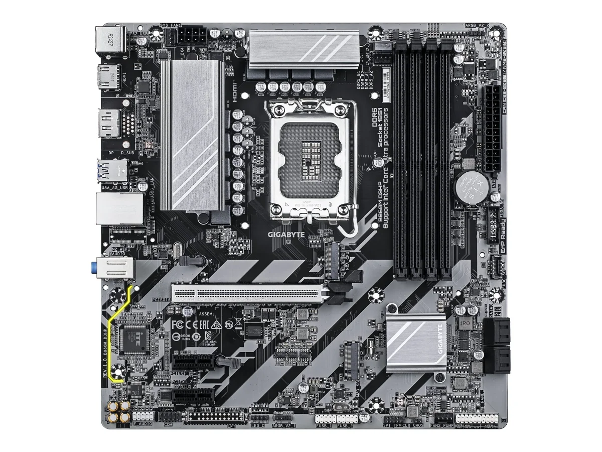 Gigabyte B860M D3HP - Motherboard - micro ATX - LGA1851 Sockel - B860 Chipsatz - USB-C 3.2 Gen 1, USB 3.2 Gen 1 - Gigabit LAN - Onboard-Grafik (CPU erforderlich) - HD Audio (8-Kanal)