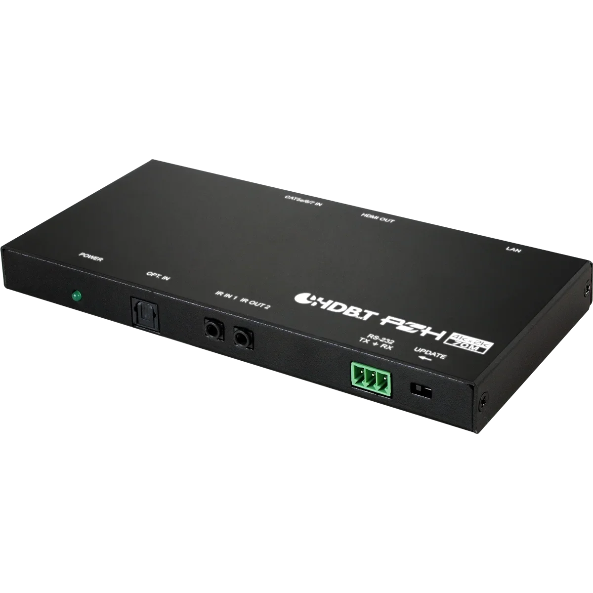 HDMI with HDR, 3D & 4K@60Hz support, Supports Deep Color input and output up to 12-bit, Supports CEC bypass, Simultaneous reception of uncompressed video, audio and data over a, single Cat.5e/6/7 cable up to 100m/328ft at 1080p60 and 70m/230ft at 4K, HDBaseT feature support: HD Video and Audio, 100BaseT Ethernet, 48V PoH, and Control (bidirectional IR/RS-232 pass-through)