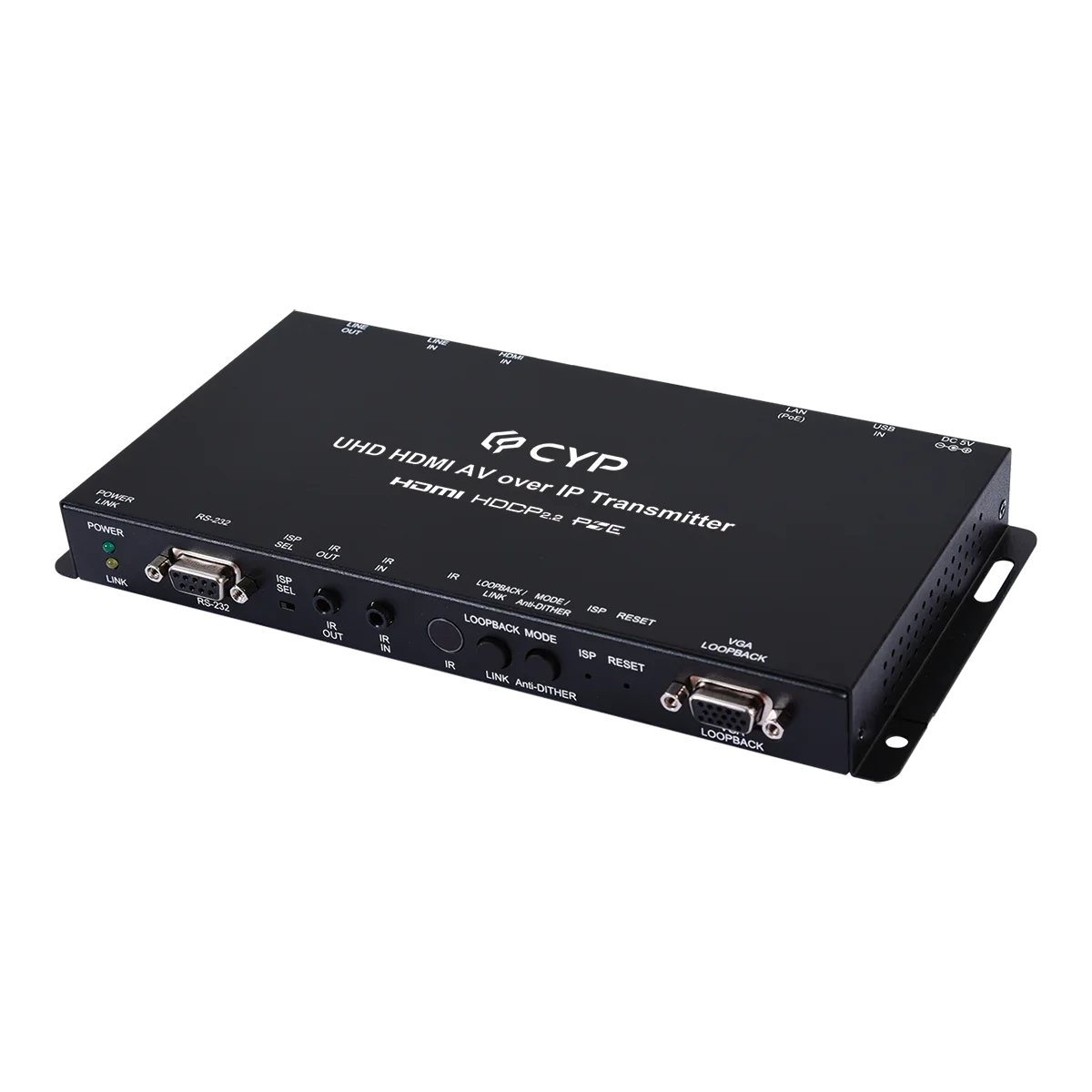 Video, audio and control transmission over TCP/IP in Unicast (point-to-point) or Multicast (single-to-many) modes, Support with 0°, 180°, 270° increments rotation, The analog Line In on the Transmitter sends audio directly to the analog Line Out and is inserted into the HDMI output on connected Receivers, The Mic In on the Receiver sends audio directly to the analog Line Out on the Transmitter, Both Tx and Rx may powered directly by PoE when connected to a Gigabit Ethernet switch that provides PoE (802.3af), Supports USB keyboard, mouse and storage extension and IR ,RS-232 bypass, Unit can be controlled via WebGUI, Telnet, and front panel controls