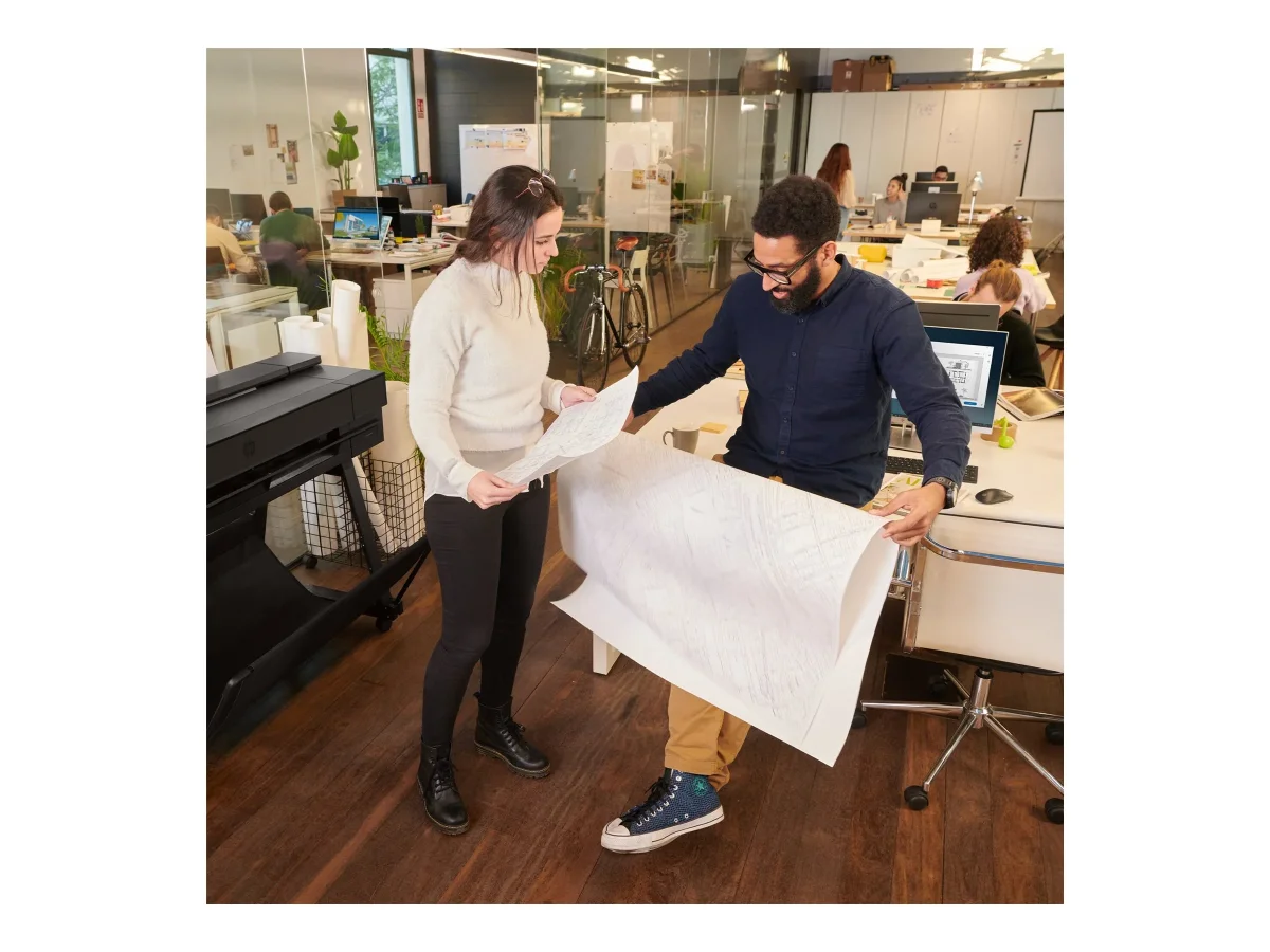 Machen Sie Ihr Team einmalig flexibel – mit dem weltweit benutzerfreundlichsten Drucksystem für A0 bis A4. Durch das integrierte Zuführungsfach wird es leicht, in unterschiedlichen Formaten zu drucken. HP Click optimiert Ihre Druckabläufe. Und auch wenn es um Umweltschutz geht, können Sie mit diesem kompakten Plotter hohe Standards erfüllen.