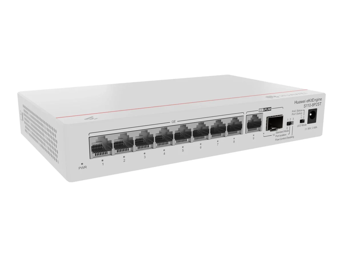 Der Huawei eKitEngine S110 Series S110-8P2ST ist ein robuster und vielseitiger Switch, der speziell für die Anforderungen moderner Netzwerkinfrastrukturen entwickelt wurde. Mit 8 PoE+ RJ-45-Ports und einem Gigabit-SFP-Port bietet er zahlreiche Anschlussmöglichkeiten für eine Vielzahl von Geräten und ist damit die ideale Wahl für Unternehmen, die ihre Netzwerkkapazitäten erweitern möchten. Dieser Switch ist nicht nur flexibel in der Installation, da er sowohl auf dem Schreibtisch als auch an der Wand montiert werden kann, sondern auch in seiner Betriebssicherheit. Er arbeitet effizient über einen breiten Temperatur- und Feuchtigkeitsbereich und gewährleistet so eine konstante Leistung in jeder Umgebung. Darüber hinaus vereinfacht er mit einem PoE-Budget von 124 W und der Unterstützung von IEEE 802.3af/at die Bereitstellung von PoE-Geräten, da keine separaten Stromquellen erforderlich sind. Der Überspannungsschutz des Geräts und die Einhaltung der EMV- und IP20-Standards gewährleisten zusätzlich die Sicherheit und Langlebigkeit Ihrer Netzwerkinfrastruktur. Ob für kleine Unternehmen oder große Konzerne – der Switch Huawei eKitEngine S110 Series S110-8P2ST wurde entwickelt, um eine zuverlässige, sichere und effiziente Netzwerklösung zu bieten.