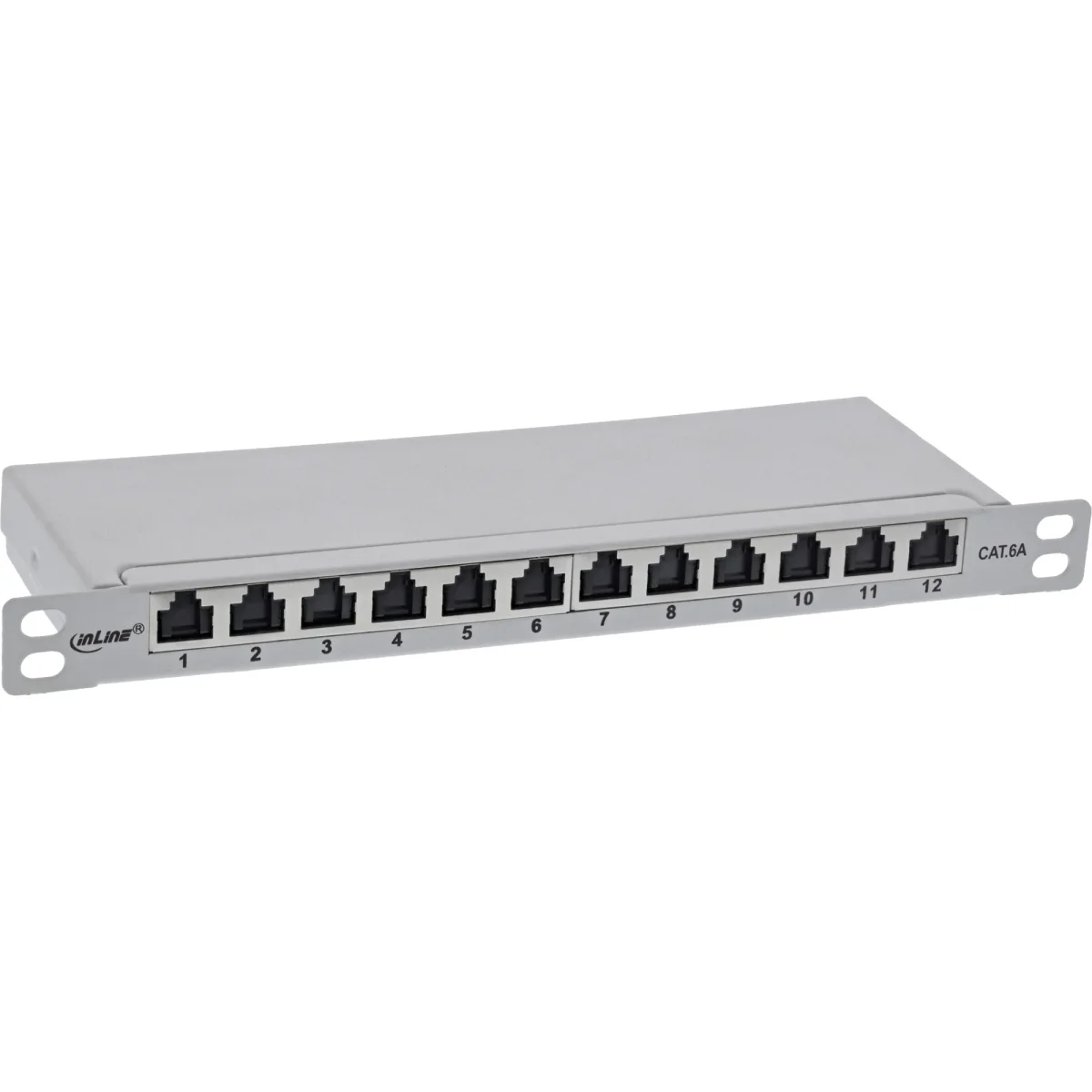 InLine® 10" Patchfeld Cat.6A 0,5HE 12-fach, lichtgrau, RAL7035, mit Staubschutz