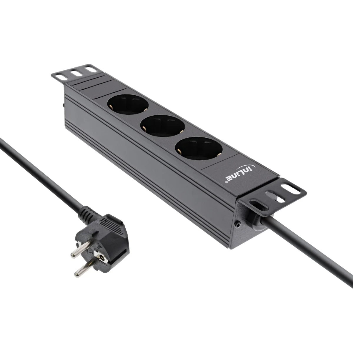 InLine® 10" Steckdosenleiste, 3-fach Schutzkontakt, ohne Schalter, 2m, schwarz