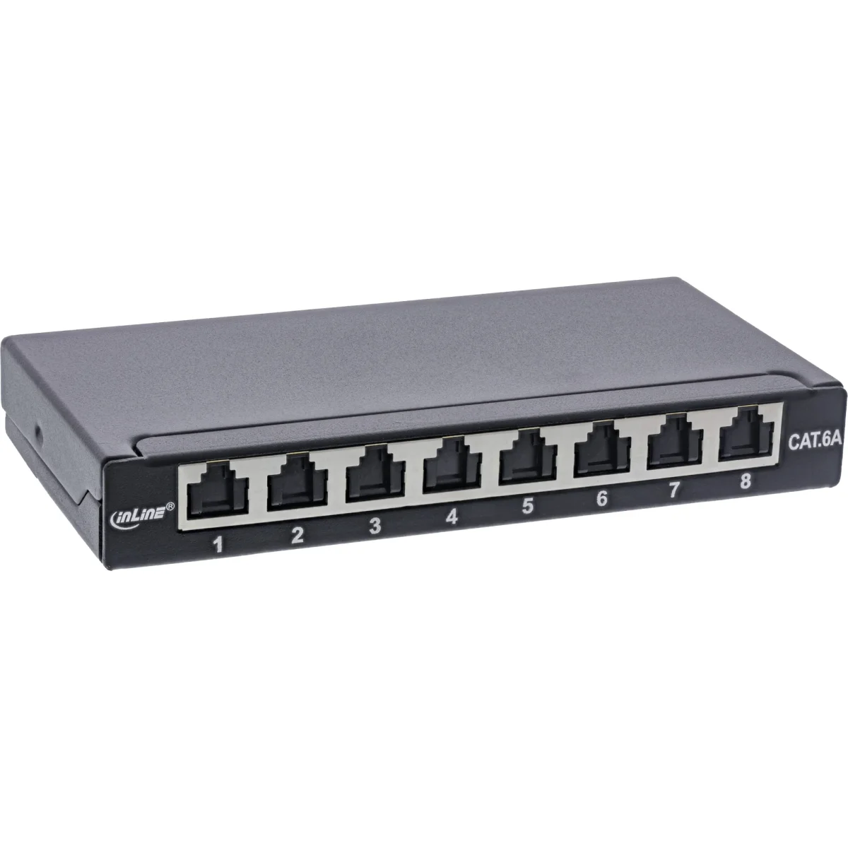 InLine® Patchfeld Cat.6A 0,5HE 8-fach, Tisch/Wand/Hutschiene schwarz Staubschutz
