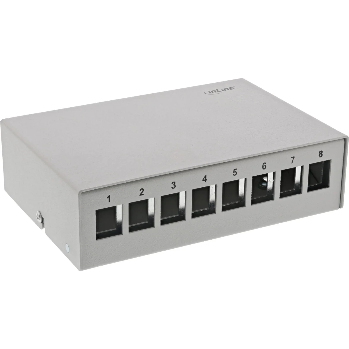 InLine® Patchfeld-Dose Aufputz für 8x Keystone RJ45, Metall, lichtgrau RAL7035