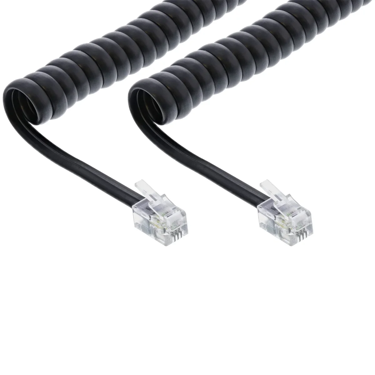 InLine® Spiralkabel, RJ10 Stecker / Stecker, schwarz, max. 2m