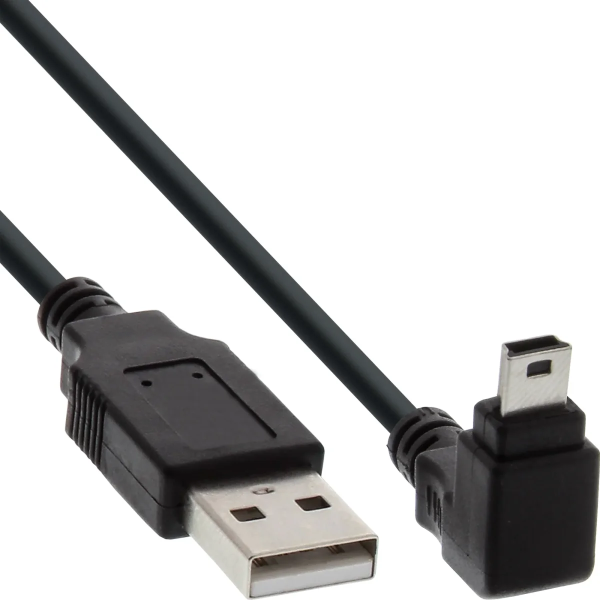 InLine® USB 2.0 Mini-Kabel, ST A/Mini-B ST 5pol, unten abgew. 90°, schwarz, 0,5m