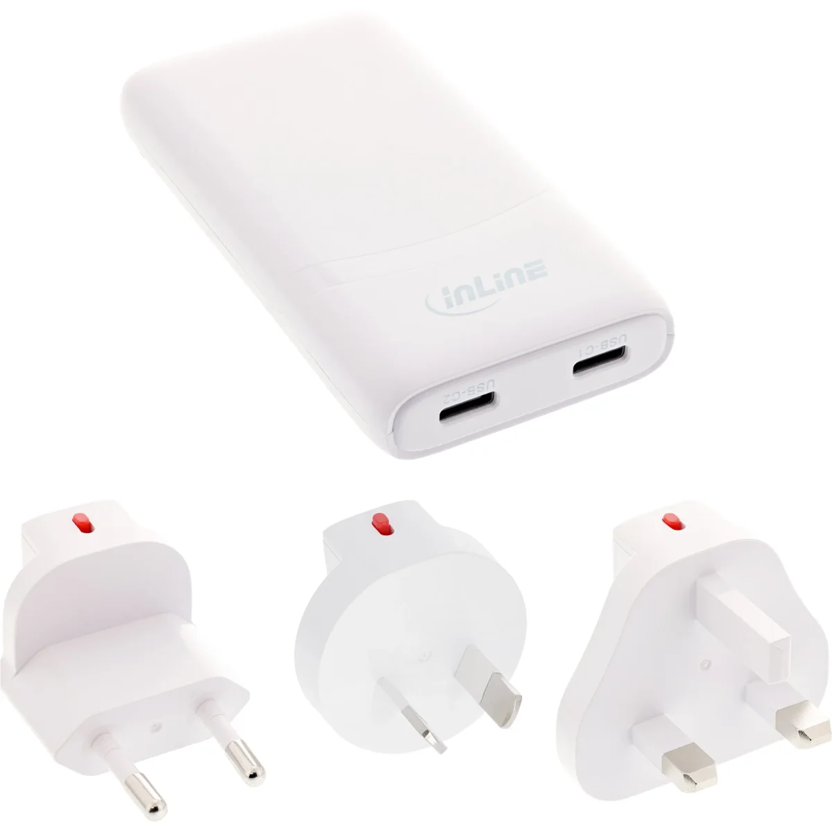 InLine® USB Reise-Netzteil Ladegerät, Dual USB-C, PD, PPS, 65W, flach, weiß