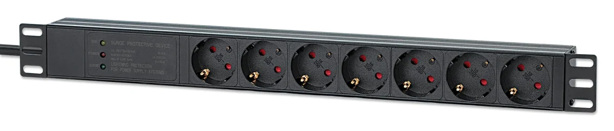 INTELLINET 48,26cm 19Zoll 7-fach Steckdosenleiste Schutzkontakt 1 HE Überspannungsschutz 500 Joule/19 500A 3m Stromkabel 16 A