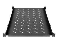 Ein festes Regal, das an vier Punkten an einem Rack befestigt wird, ist einem Kragarm- oder Gleitregal in Bezug auf Stabilität und Tragfähigkeit überlegen, ist aber in der Regel auf eine bestimmte Einbautiefe beschränkt. Dieses Rackmontage-Regal von Intellinet Network Solutions überwindet diese Schwäche mit variablen Schienen, die Sie auf Tiefen zwischen 750 und 950 mm (29,5 bis 37,4 Zoll) einstellen können. Als flexibles Netzwerkzubehör passt es universell in Intellinet- und andere Schränke von Drittanbietern mit einer Tiefe von 1000 mm (39,4 Zoll).