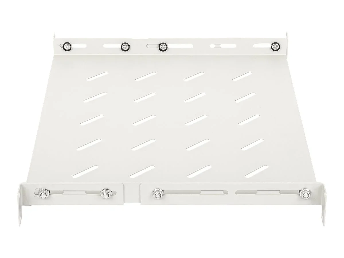 Ein Regal mit fester 4-Punkt-Rackbefestigung ist Kragarm- und Schieberegalen in Bezug auf Stabilität und Tragfähigkeit überlegen, ist aber in der Regel auf eine bestimmte Einbautiefe beschränkt. Dieses Rackmontage-Regal von Intellinet Network Solutions überwindet diese Schwäche mit variablen Schienen, die Sie auf Tiefen zwischen 350 und 550 mm einstellen können. Als flexibles Netzwerkzubehör passt es universell in Intellinet- und andere Schränke von Drittanbietern mit einer Tiefe von 600 mm (23,6 Zoll).