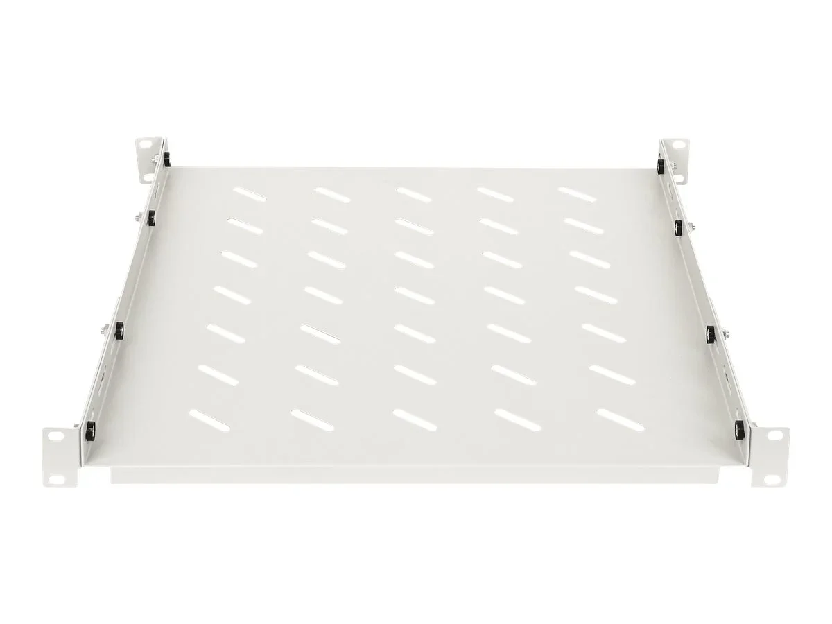 Ein festes Regal, das an vier Punkten an einem Rack befestigt wird, ist einem Kragarm- oder Gleitregal in Bezug auf Stabilität und Tragfähigkeit überlegen, ist aber in der Regel auf eine bestimmte Einbautiefe beschränkt. Dieses Rackmontage-Regal von Intellinet Network Solutions überwindet diese Schwäche mit variablen Schienen, die Sie auf Tiefen zwischen 550 und 750 mm (21,7 bis 29,5 Zoll) einstellen können. Als flexibles Netzwerkzubehör passt es universell in Intellinet- und andere Schränke von Drittanbietern mit einer Tiefe von 800 mm (31,5 Zoll).