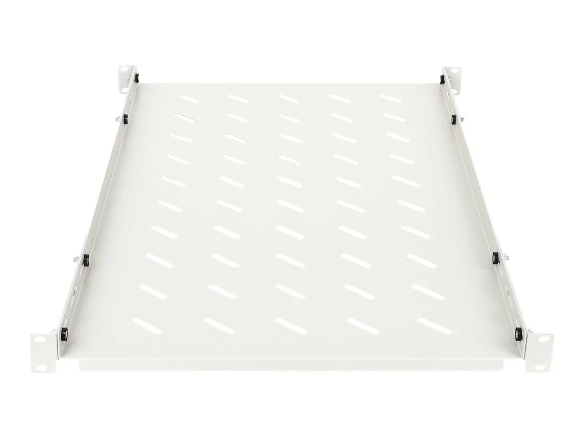 Ein festes Regal, das an vier Punkten an einem Rack befestigt wird, ist einem Kragarm- oder Gleitregal in Bezug auf Stabilität und Tragfähigkeit überlegen, ist aber in der Regel auf eine bestimmte Einbautiefe beschränkt. Dieses Rackmontage-Regal von Intellinet Network Solutions überwindet diese Schwäche mit variablen Schienen, die Sie auf Tiefen zwischen 750 und 950 mm (29,5 bis 37,4 Zoll) einstellen können. Als flexibles Netzwerkzubehör passt es universell in Intellinet- und andere Schränke von Drittanbietern mit einer Tiefe von 1000 mm (39,4 Zoll).