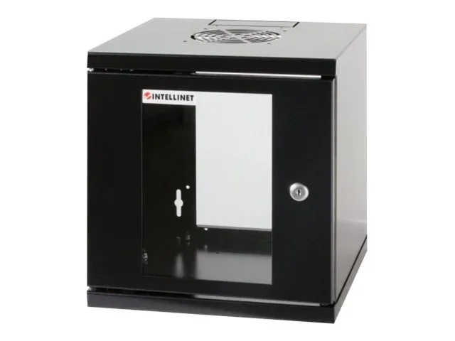 Intellinet Network Cabinet, Wall Mount (Standard), 6U, Usable Depth 265mm/Width 239mm, Black, Assembled, Max 60kg, Metal & Glass Door, Back Panel, Removeable Sides,Suitable also for use on desk or floor, 10",Parts for wall install (eg screws/rawl plugs) not included - Gehäuse - geeignet für Wandmontage - Schwarz, RAL 9005 - 6U - 25.4 cm (10")