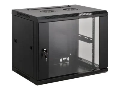 Intellinet Network Cabinet, Wall Mount (Standard), 12U, Usable Depth 500mm/Width 540mm, Black, Assembled, Max 60kg, Metal & Glass Door, Back Panel, Removeable Sides,Suitable also for use on desk or floor,19",Parts for wall install (eg screws/rawl plugs) not included - Gehäuse - geeignet für Wandmontage - Schwarz, RAL 9005 - 12U - 48.3 cm (19")
