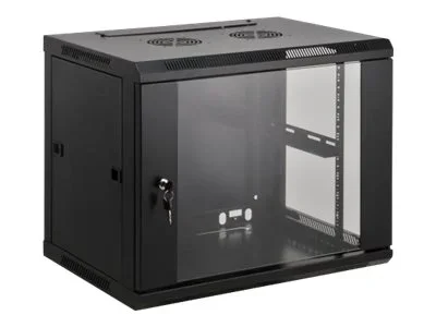 Intellinet Network Cabinet, Wall Mount (Standard), 9U, Usable Depth 350mm/Width 540mm, Black, Assembled, Max 60kg, Metal & Glass Door, Back Panel, Removeable Sides,Suitable also for use on desk or floor, 19",Parts for wall install (eg screws/rawl plugs) not included - Gehäuse - geeignet für Wandmontage - Schwarz, RAL 9005 - 9U - 48.3 cm (19")