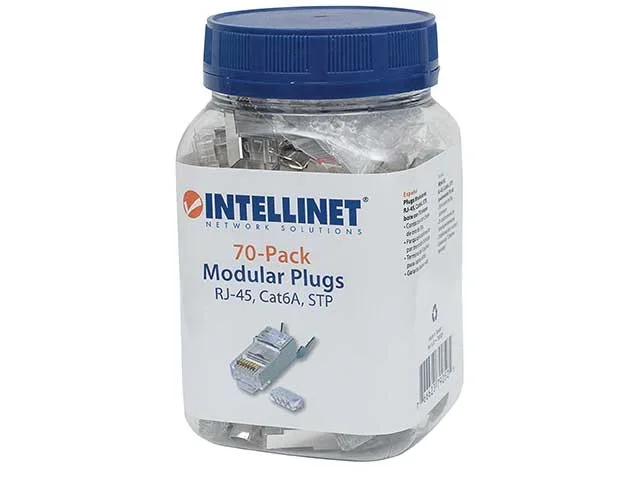 Intellinet RJ45 Modular Plugs Pro Line, Cat6A, STP, 3-prong, for solid & stranded wire, 50 µ gold-plated contacts, 70 pack - Netzwerkanschluss - RJ-45 (M) - STP - CAT 6a (Packung mit 70)