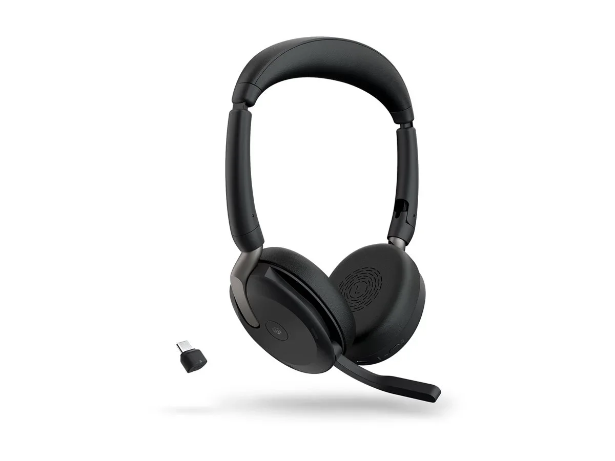 Jabra Evolve2 65 Flex MS Stereo - Headset - On-Ear - Bluetooth - kabellos - aktive Rauschunterdrückung - USB-C - Schwarz - Zertifiziert für Microsoft Teams