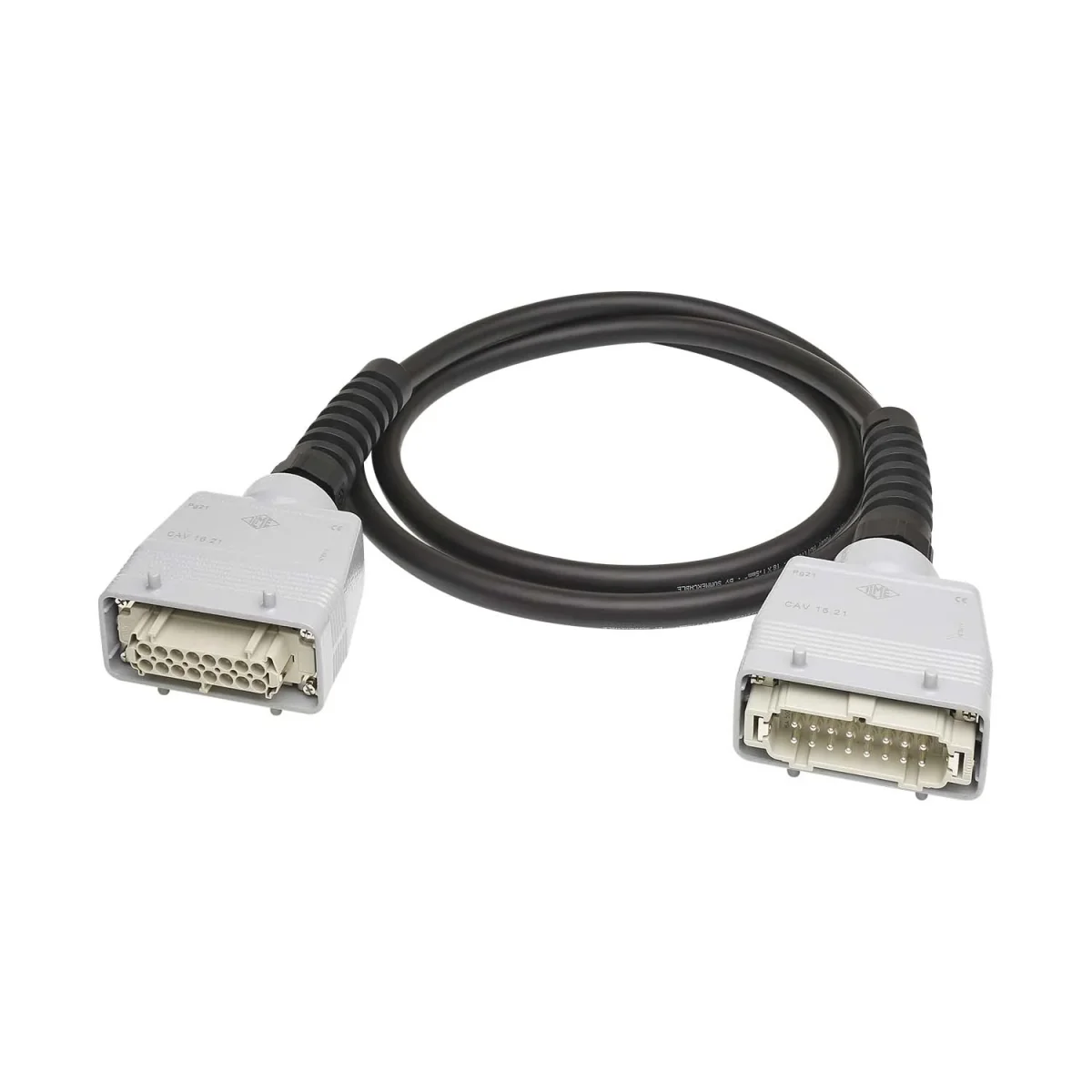 Wir liefern unsere robuste und belastbare Kabelfamilie SC-ATRIUM Flex (flexibler Innenaufbau gemäß VDE 0295/Klasse 5) konfektioniert mit zuverlässigen ILME Rechteck- (Harting HAN E-Serie kompatibel) oder neu mit HI-SOCA19 Rundsteckverbinder (Socapex 419 kompatibel). Zum Knickschutz und zur optimalen Zugentlastung kommen hochwertige Spiralknickschutzverschraubungen zum Einsatz.