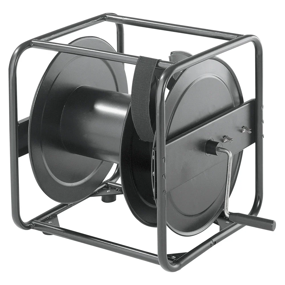 Diese aufeinander stapelbaren Leitungstrommeln sind sehr günstig. Sie sind aus schwarzem und 20 mm starkem Stahlrohr gefertigt und werden in erster Linie für die Wicklung von schweren Multipair-Systemen ein gesetzt. Jede Trommel besitzt an der Seite ausklappbare Tragegriffe und ein Reservoir in dem man die Kabelendstücke und Spleißungen unterbringen kann (Reservoir-Breite eigenet sich bis LK37). Alle Trommeln sind am Bodengestänge vorgebohrt, damit man ohne große Schwierigkeiten handelsübliche Vollgummiräder anbringen kann.