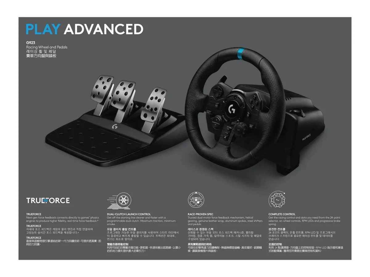 Logitech G G923 - Lenkrad-, Pedale- und Schaltknüppel-Set - kabelgebunden - für PC, Sony PlayStation 4, Sony PlayStation 5