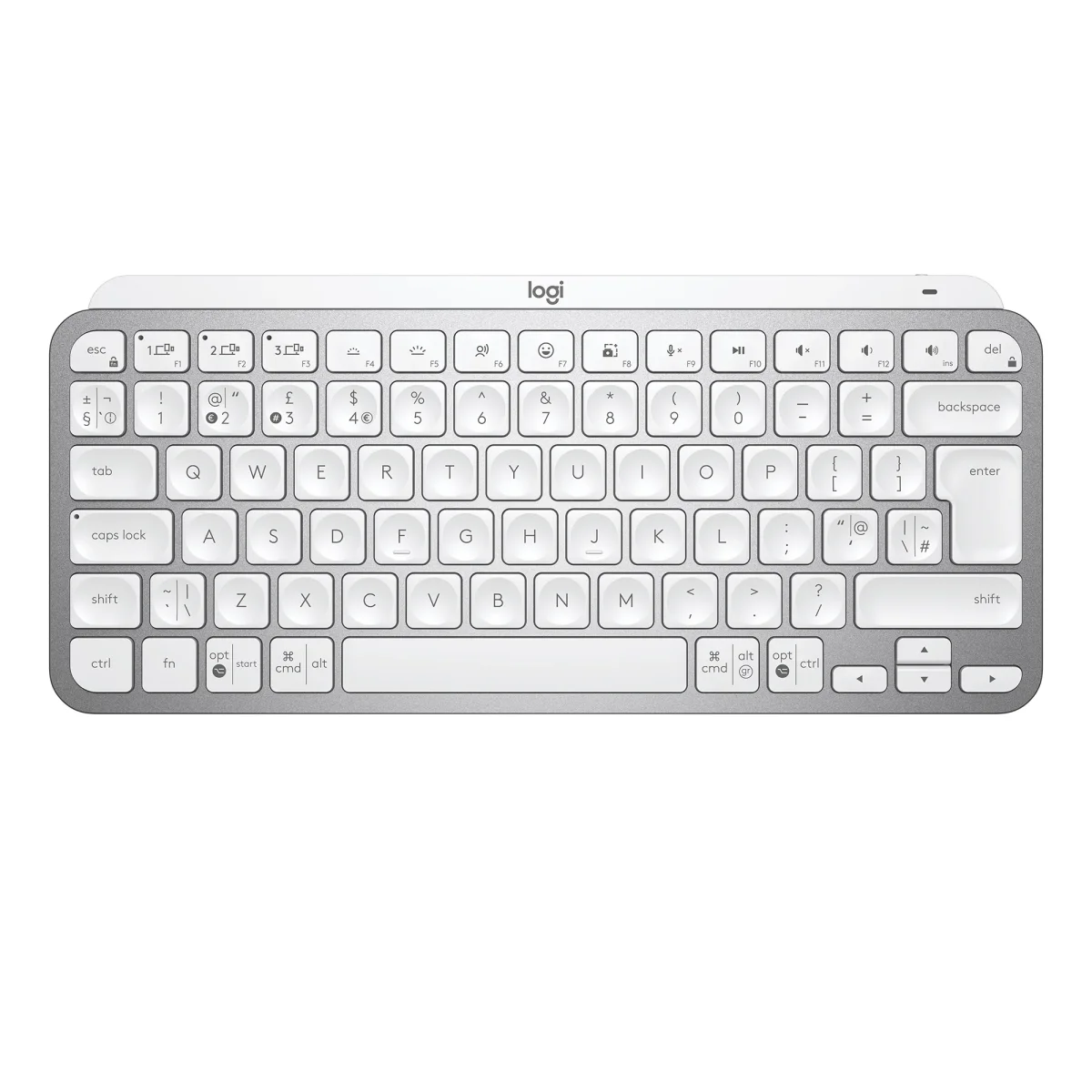 Logitech MX Keys Mini Minimalist Wireless Illuminated Keyboard. Tastatur Formfaktor: Mini. Tastatur-Stil: Gerade. Übertragungstechnik: Kabellos, Geräteschnittstelle: RF Wireless + Bluetooth, Tastaturaufbau: QWERTY. Typ der Hintergrundbeleuchtung: LED. Empfohlene Nutzung: Büro. Produktfarbe: Grau