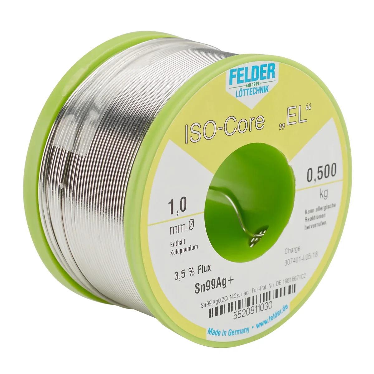 Lötdraht Sn99Ag0,3Cu0,7NiGe FelderDurchmesser 1,0mm. 500g Spule,bleifrei