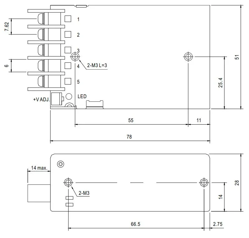 Universal Netzteil RS-25-5 Eingang: 88-264VAC, 125~373VDC Ausgang: 5A, 5V DC Betriebstemperatur: -20°C bis +70°C LxBxH 78x51x28mm Anschluss über Schraubklemmen Der Anschluss Elektrischer Bauteile und Anlagen darf grundsätzlich nur von qualifizierten Fachpersonal vorgenommen werden!
