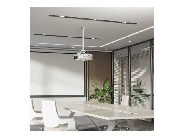 Der Manhattan von IC Intracom bietet ein hochbelastbares, höhenverstellbares Befestigungsset, das speziell für Projektoren entwickelt wurde. Diese robuste Deckenhalterung aus kaltgewalztem Stahl gewährleistet Stabilität und Zuverlässigkeit für verschiedene Anwendungen. Die vielseitige Konfiguration ermöglicht einen Neigungsbereich von -20° bis 20° und eine vollständige Drehung um 360°, sodass der Projektor ganz einfach in den gewünschten Winkel gebracht werden kann. Dank der integrierten Kabelführung bleiben die Kabel ordentlich verstaut und sorgen so für ein aufgeräumtes Erscheinungsbild. Die pulverbeschichtete Oberfläche erhöht die Langlebigkeit und sorgt für ein elegantes, professionelles Aussehen, das sich nahtlos in jede Umgebung einfügt.