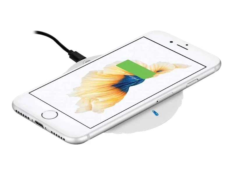 MANHATTAN Kabelloses Induktionsladegerät 5 W Qi-zertifizierter Wireless Charger sichere Ladung mit 5 W 5 V/1 A rundes Ladepad weiss
