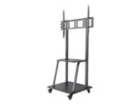 Sie müssen einen Fernseher regelmäßig zwischen Räumen bewegen? Dieser TV-Ständer auf Rollen macht Ihnen diese Aufgabe leicht. Auf dem integrierten Fachboden können Sie zudem ein AV-Zubehörgerät wie einen Blu-ray-Player oder einen Receiver platzieren, ein zweiter Fachboden bietet zusätzlichen Stauraum. Dank VESA-Entsprechung und Qualitätsmaterial ist er geeignet für zahlreiche Displaygrößen und sorgt für zuverlässige Montage über dem Boden, selbst bei besonders schweren Großbildschirmen bis zu 100" und 150 kg. Ideal für Büros, Klassen- und Konferenzräume und vieles mehr.