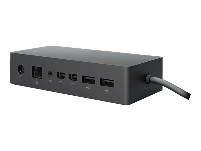 Das Microsoft Surface Dock ist eine vielseitige Dockingstation, die nahtlose Konnektivität und verbesserte Produktivität ermöglicht. Mit seinem integrierten Formfaktor ist es für die Verwendung mit Ihrem Surface-Gerät konzipiert und bietet eine robuste Stromversorgung sowie eine Vielzahl von Anschlussmöglichkeiten. Dieses Gerät ist mit verschiedenen Schnittstellen ausgestattet, darunter Audio- und Netzwerkanschlüsse, und gewährleistet so ein umfassendes Anschlusserlebnis für private und berufliche Anforderungen. Die Netzwerkfunktionen werden durch Ethernet-, Fast Ethernet- und Gigabit Ethernet-Protokolle unterstützt und ermöglichen einen stabilen und schnellen Internetzugang. Der integrierte Kensington-Sicherheitsschlitz erhöht die Sicherheit des Geräts, da physische Maßnahmen zum Schutz Ihrer wertvollen Geräte ergriffen werden können. Das Surface Dock vereinfacht Ihren Arbeitsbereich und verbessert Ihre täglichen Computeraufgaben durch sein zuverlässiges und effizientes Design.