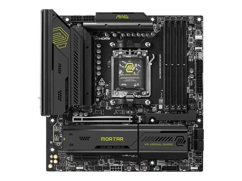 Das MSI MAG B850M MORTAR WIFI-Motherboard wurde für Leistung und Flexibilität entwickelt und eignet sich für Prozessoren der AMD Ryzen 7000/8000/9000-Serie. Mit seinem Micro-ATX-Formfaktor unterstützt dieses Motherboard DDR5-SDRAM mit Geschwindigkeiten von bis zu 4100 MHz (O.C.) über vier DIMM-Steckplätze. Dank der Core Boost-Technologie von MSI und einem erweiterten Kühlkörperdesign gewährleistet dieses Motherboard eine robuste Stromversorgung und effiziente Kühlung und ist somit ideal für leistungsstarkes Gaming und produktive Aufgaben.
