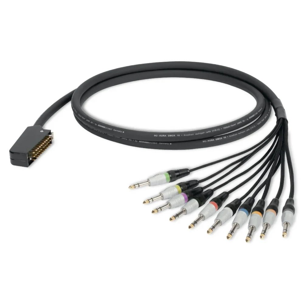 Wir verwenden unser hochflexibles 10-paariges AES/EBU Multipair SC-AURA DMCK (Paare einzeln isoliert, Kreuzgeflechtschirm) oder das robuste 12-paarige TRANSFER HIGHFLEX mit PurMasterBlend-Mantel zusammen mit den – im Broadcast-Bereich sehr verbreiteten – 30- bzw 39-pol Messer- & Federleisten-Steckverbindern nach DIN 41622/41618 (oftmals mit „Siemens Messerleiste” bezeichnet).