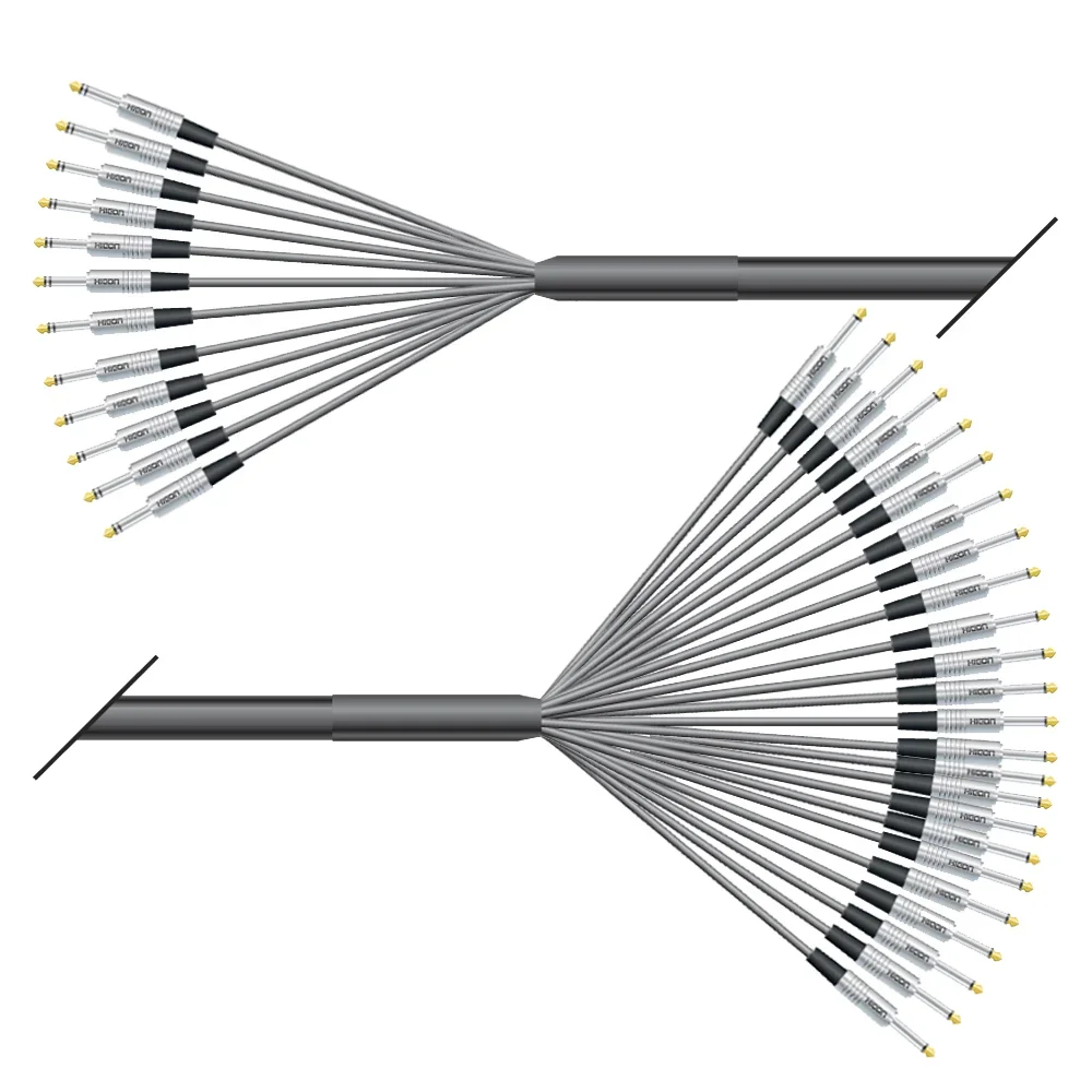 Die folgenden Kabel sind spezielle Insert Looms für Mischpulte mit unsymmetrischen Inserts, d.h. Send und Return sind auf einer gemeinsamen Stereoklinkenbuchse im Mischpult vorhanden. Um diese dann mit einem Effektgerät zu verbinden, muss man das Signal auf 2 einzelne Stecker verteilen. Genau das machen unsere Looms. Dies bedeutet unweigerlich, dass auf einer Seite z.B. 8 Stereoklinken sind, auf der anderen Seiten dann passend dazu 16 Monoklinken. Oder die andere Seite ist mit 8 XLR male und 8 XLR female versehen.