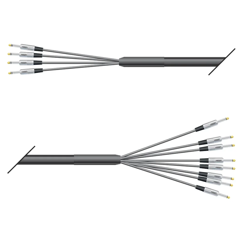 Die folgenden Kabel sind spezielle Insert Looms für Mischpulte mit unsymmetrischen Inserts, d.h. Send und Return sind auf einer gemeinsamen Stereoklinkenbuchse im Mischpult vorhanden. Um diese dann mit einem Effektgerät zu verbinden, muss man das Signal auf 2 einzelne Stecker verteilen. Genau das machen unsere Looms. Dies bedeutet unweigerlich, dass auf einer Seite z.B. 8 Stereoklinken sind, auf der anderen Seiten dann passend dazu 16 Monoklinken. Oder die andere Seite ist mit 8 XLR male und 8 XLR female versehen.