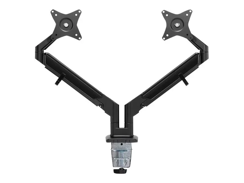 Dank des kurzen T-Rex®-Oberarms ist nur eine minimale Tiefe erforderlich, wenn die Halterung in der Nähe einer Wand oder Trennwand aufgestellt wird. Dadurch können die Bildschirme weiter vom Benutzer entfernt aufgestellt werden, was besser für die Augen ist und auch mehr Raum für eine gute ergonomische Arbeitshaltung lässt. Die DS70-810BL2 sind für Bildschirme mit einem VESA-Lochmuster von 75x75 oder 100x100 mm geeignet. Neomounts bietet verschiedene VESA-Adapterplatten für unterschiedliche Lochmuster an. Die DS70-810BL2 sind mit einem Quick-Release-VESA-System für eine einfache Installation ausgestattet und werden mit einer Tischklemme und einer Tülle geliefert.