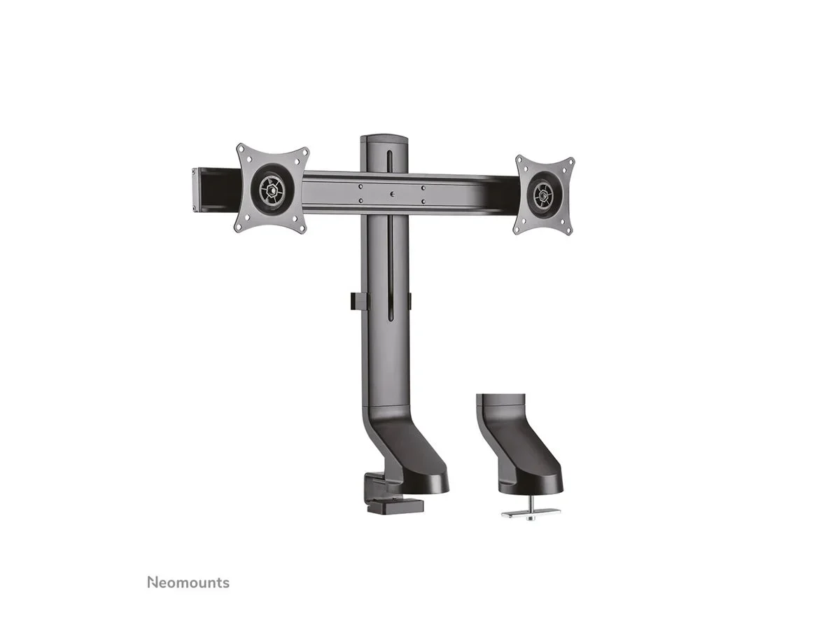 Die Neomounts Tischhalterung, das Modell FPMA-D860DBLACK, ist ein Neig-, Schwenk- und drehbare Tischhalterung für zwei Flachbildschirme bis 27" (69 cm). Diese Halterung ist eine gute Wahl für platzsparende Platzierung auf Schreibtischenr.