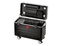 Der PARAPROJECT Case i16 Typ-C ist die intelligente Lösung, wenn es um die Aufbewahrung von iPads mit USB-C Anschluss geht. Der flexible Systemkoffer bietet in gepolsterten Fächern, Raum für bis zu 16 iPads, die er über die zentrale Lade- und Sync-Einheit in optimaler Geschwindigkeit lädt und synchronisiert. Seine in Reihe positionierten USB-Anschlüsse ermöglichen ein sauberes Kabelmanagement. Im Lieferumfang sind 16 passende Kabel enthalten. Darüber hinaus stehen Anschlussmöglichkeiten für Zubehör wie Apple TV, AirPort und das MacBook bis 15.6" zur Verfügung. Das bequeme Handling des Koffers wird durch seitlich montierte Griffe sowie dem 4-Rollen-Konzept „EasyMove" ermöglicht. Ebenso verfügt der Koffer über einen ausziehbaren Teleskopgriff. Die strapazierfähige schwarze Außenhülle aus X-ABS Kunststoff im Aluminiumrahmen, schützt sicher vor äußeren Einwirkungen. Um den Inhalt auch vor unbefugtem Zugriff zu schützen, bietet der Case Zahlenschlösser. So überzeugt der PARAPROJECT Case i16 Typ-C neben der ausgeklügelten Funktionalität mit ansprechendem Design und hochwertig verarbeiteter Materialien.