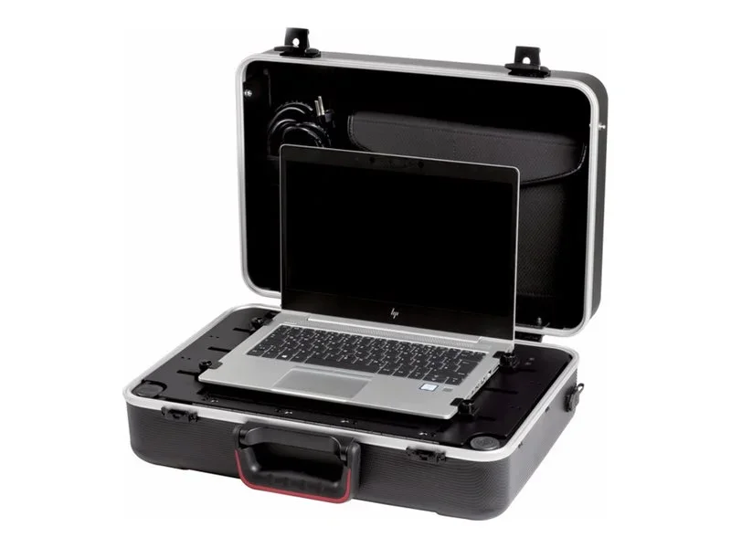 Dank der raffinierten Innenaufteilung finden Notebook und mobiler Drucker nicht nur optimalen Schutz, sondern sind innerhalb von Sekunden einsatzbereit – ganz ohne langes Aufbauen oder Verkabeln. Zwei integrierte Kabelbäume ermöglichen eine einfache und schnelle Verbindung aller Komponenten, sodass Sie ohne lästiges Kabelchaos direkt mit Ihrer Arbeit beginnen. Die ergonomische Notebook-Stütze sorgt dabei für komfortables Arbeiten, selbst bei längeren Einsätzen.