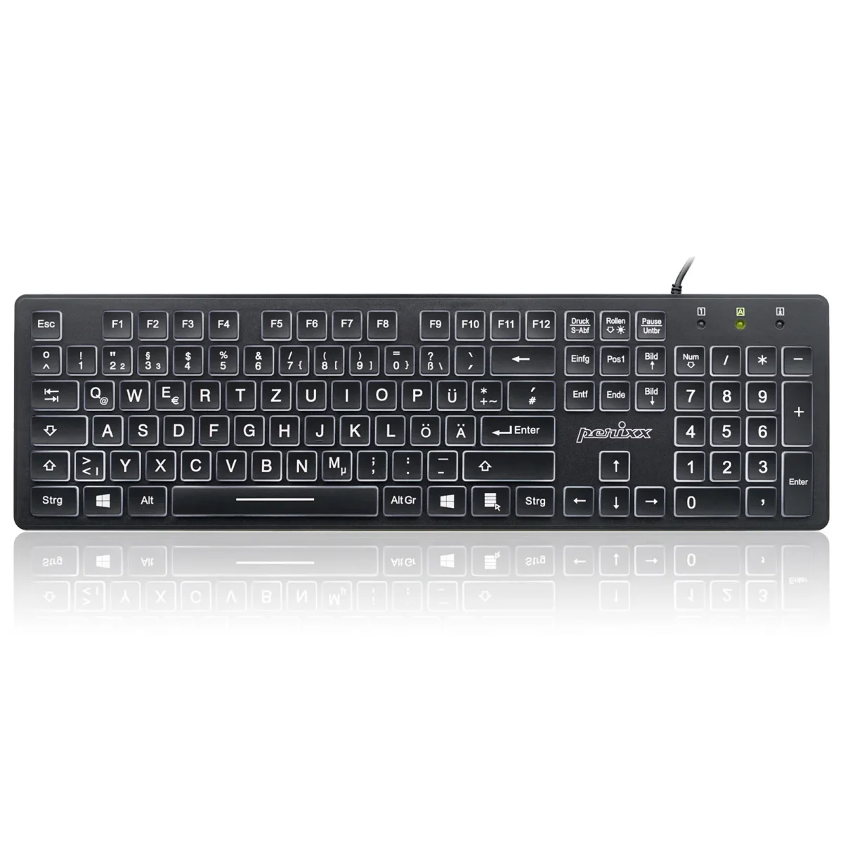 Perixx PERIBOARD-317 DE, beleuchtet, USB kabel, große Buchstaben, schwarz